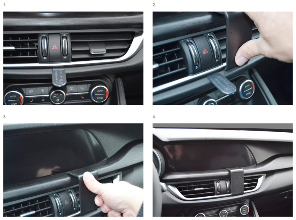 • Angled Mount, Einbau am Lüftungsauslass der Mittelkonsole, rechts der Bedientaste für die Warnblinkanlage