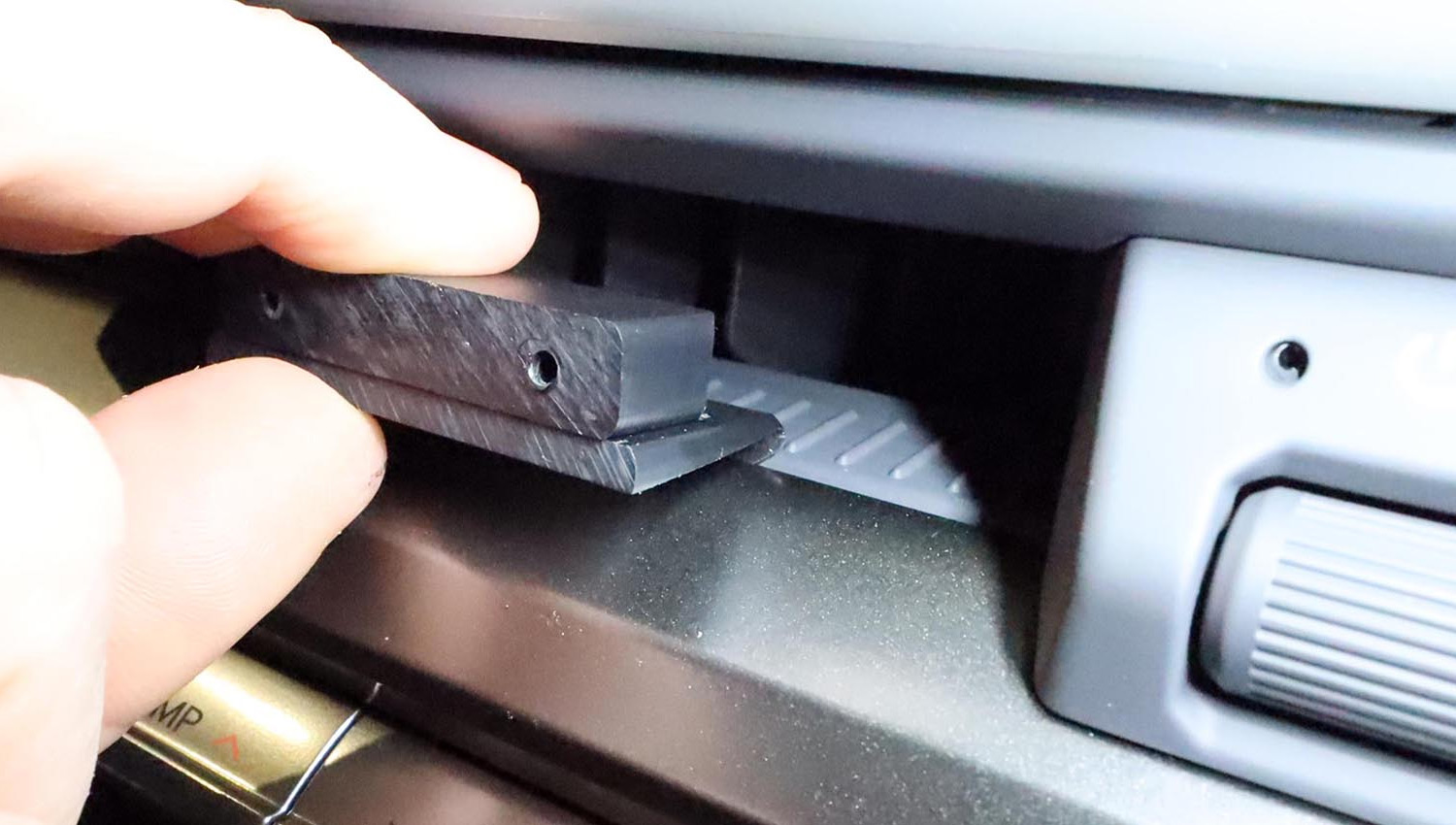 - Einbau an einem der beiden Lüftungsauslässe der Mittelkonsole.