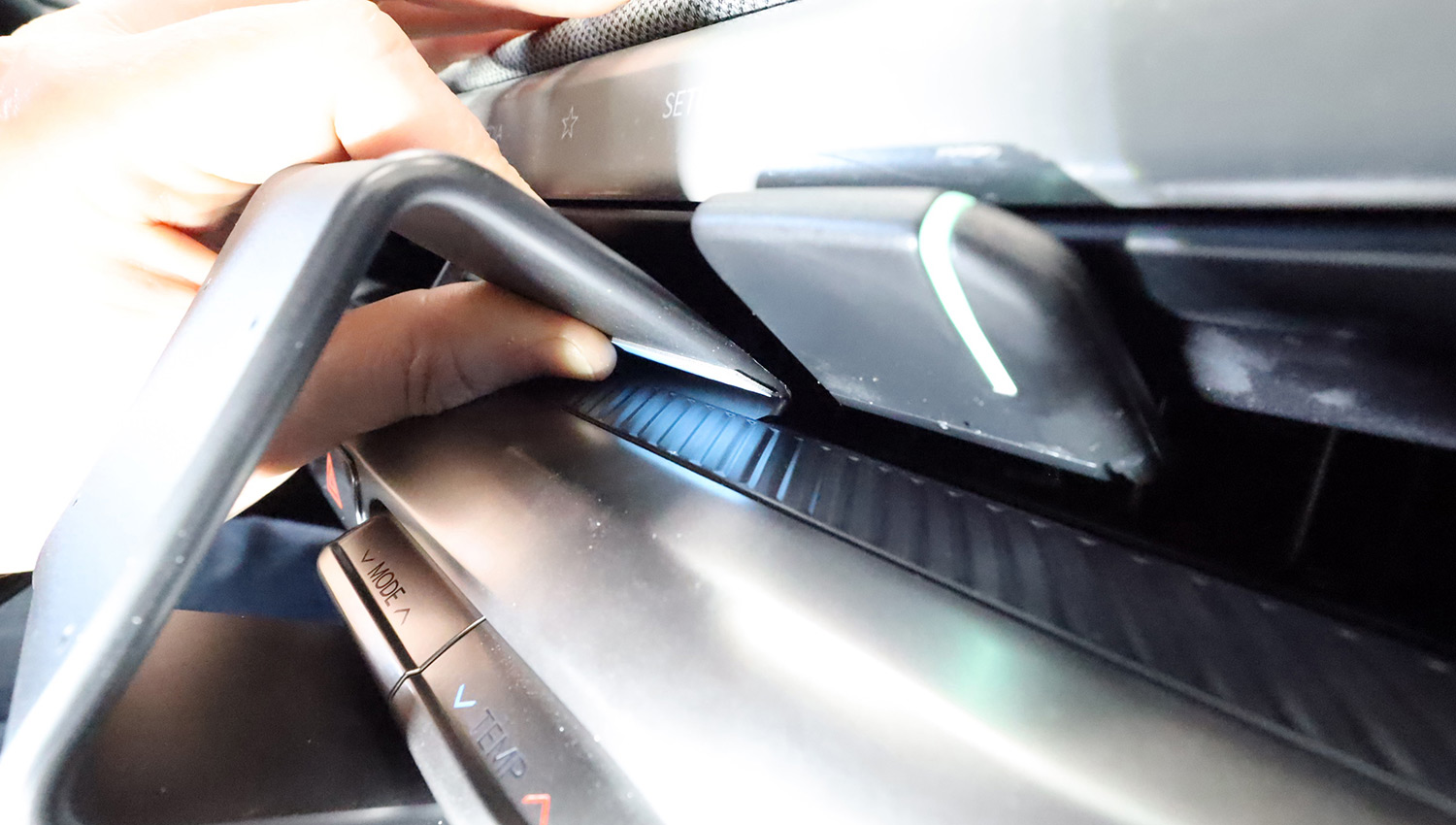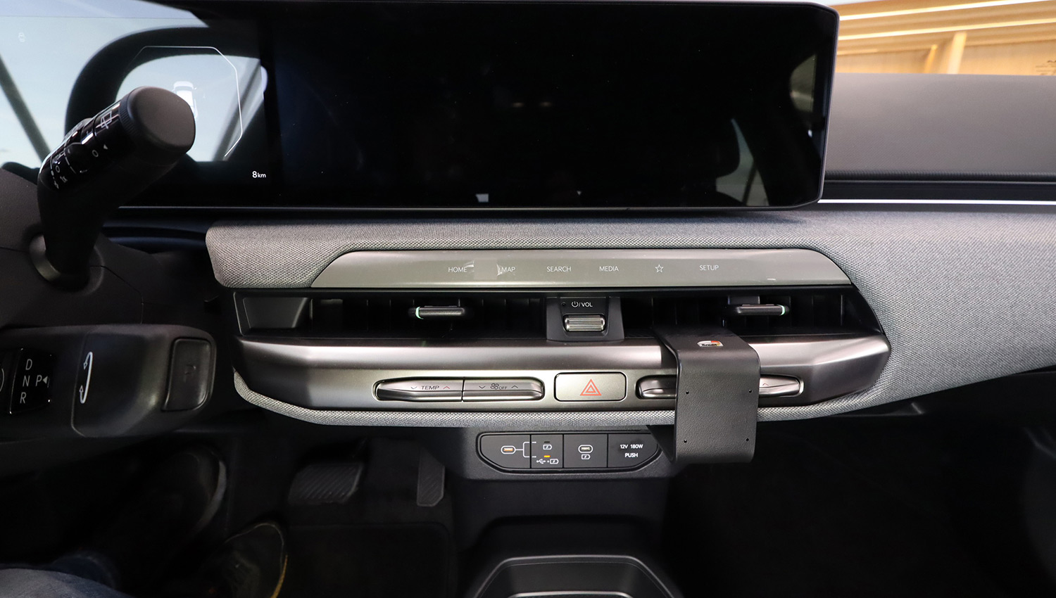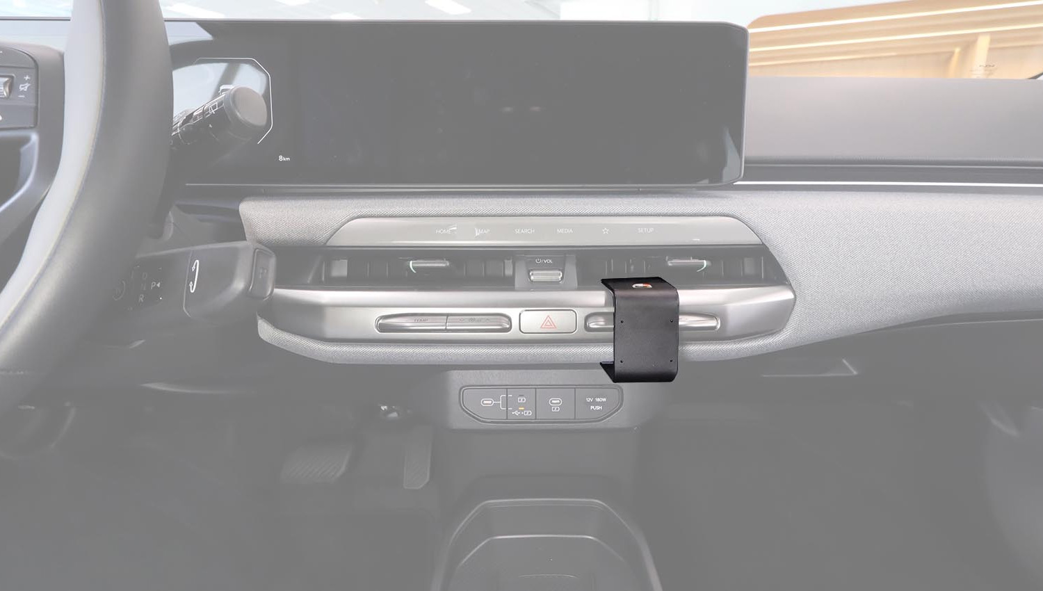 - Einbau an einem der beiden Lüftungsauslässe der Mittelkonsole.