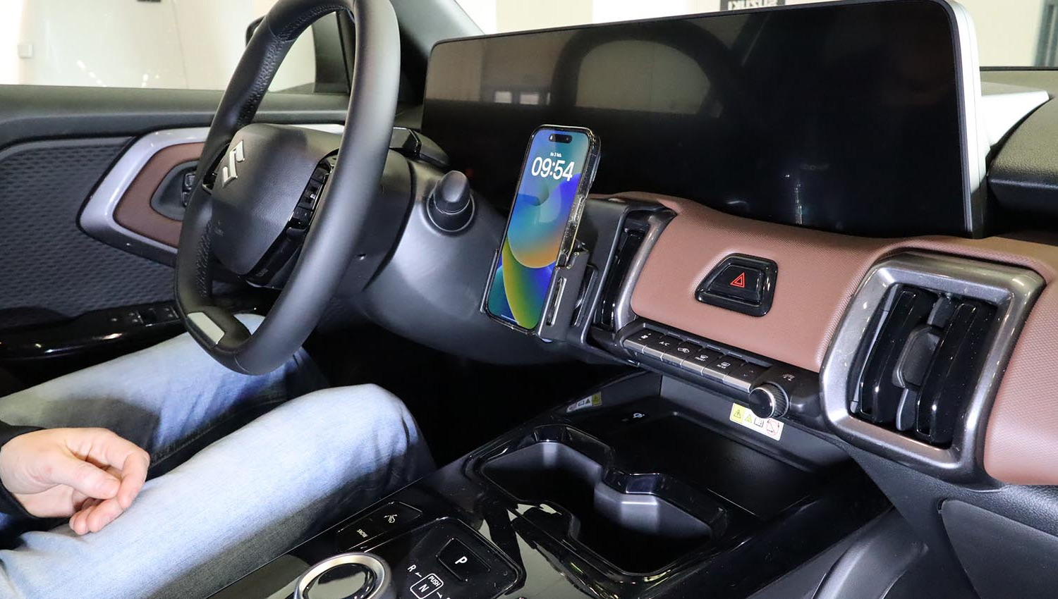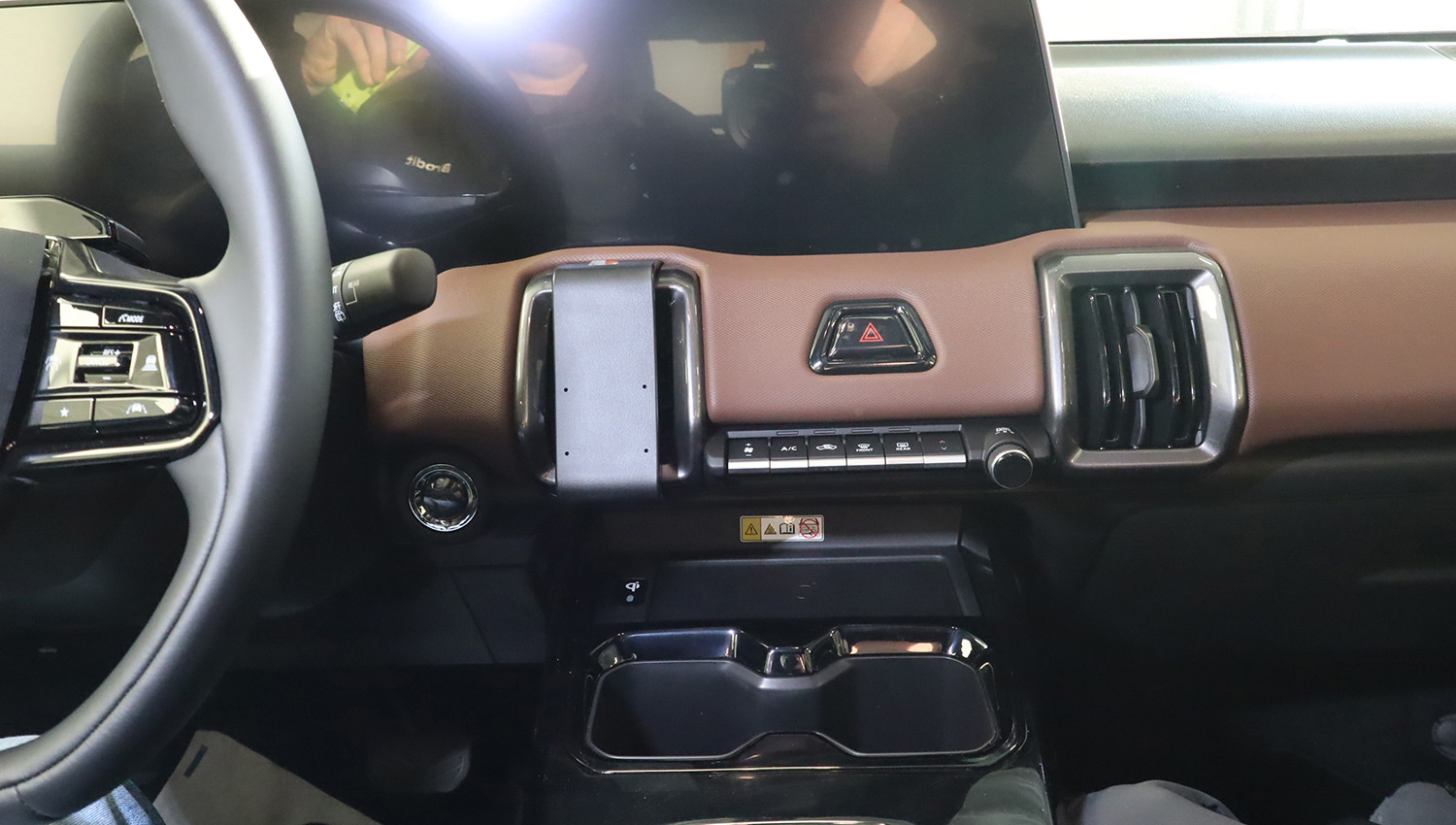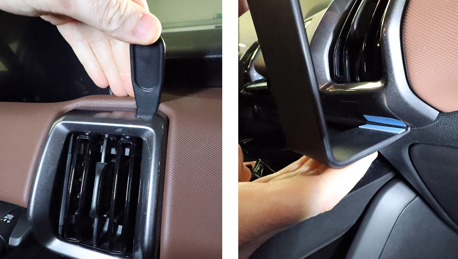 - Einbau am linken oder rechten Lüftungsauslass der Mittelkonsole.