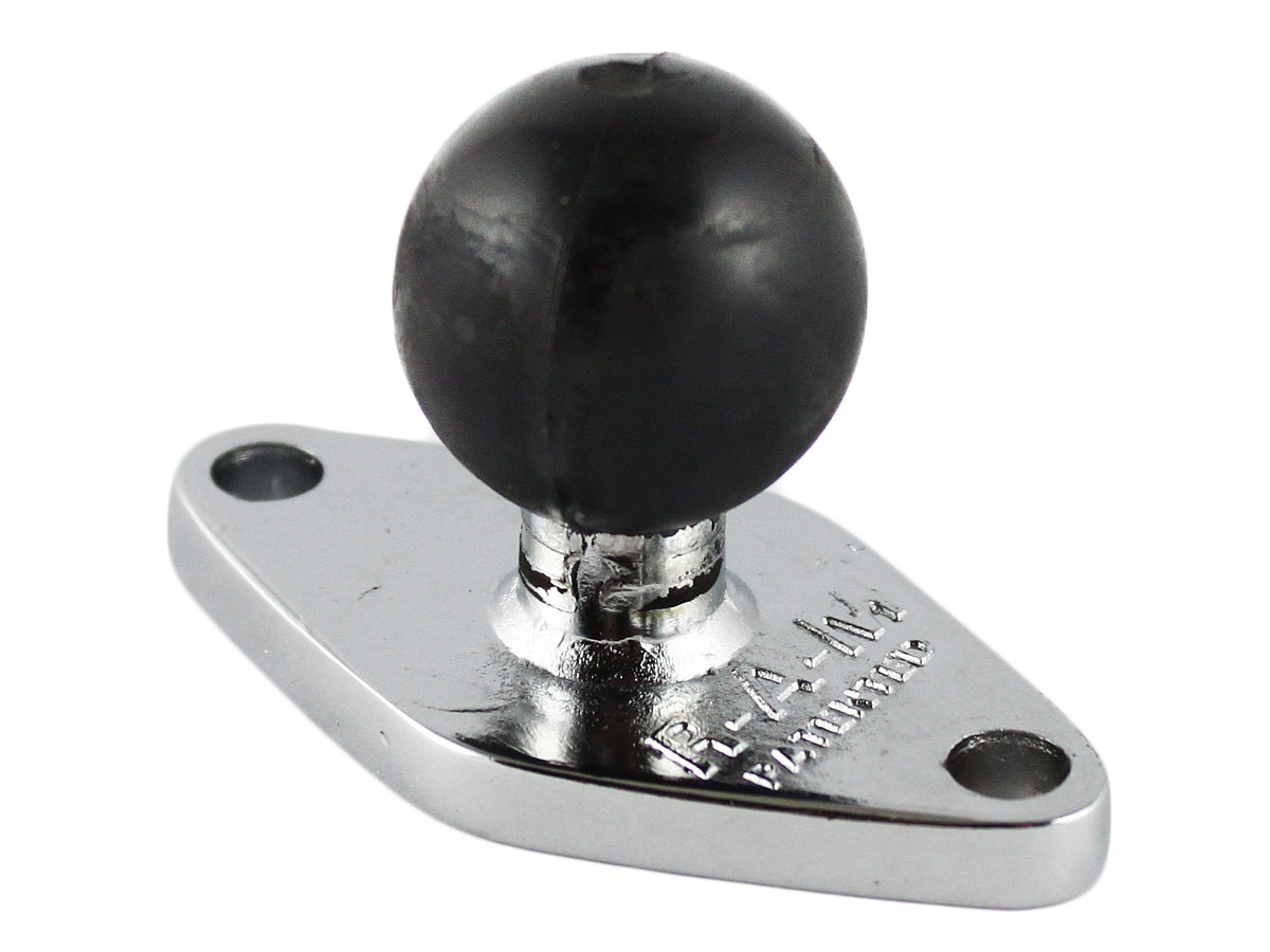 - Rautenförmige Befestigungsbasis mit zwei Schraublöchern und einer 1 Zoll Gelenkkugel (Kugelgröße B) zur Anbringung an RAM Mount Gelenkarmen. Material: verchromtes Aluminium