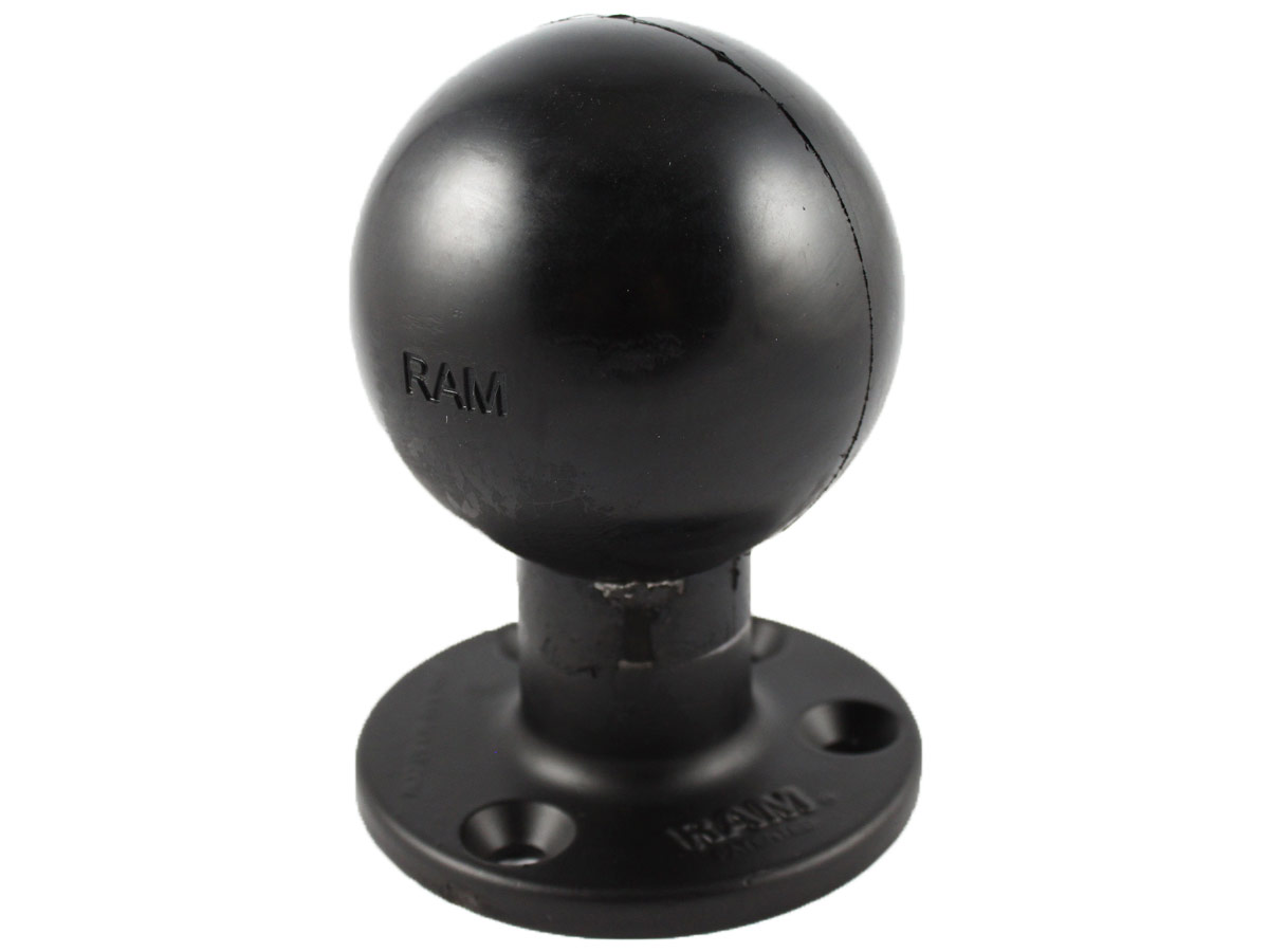 - Runde Befestigungsbasis mit Schraublöchern und einer Gelenkkugel Größe E (Durchmesser ca. 86mm) zur Befestigung an RAM Gelenkarmen mit 3,38-Zoll Kugelgelenkpfannen.